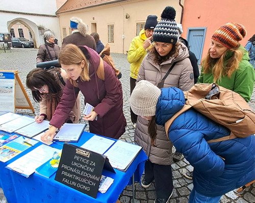 Na pěší zóně v Pardubicích na Přihrádku v blízkosti místního zámku se 6. prosince 2025, druhou adventní sobotu, sešlo jedenáct praktikujících Falun Gongu z Čech i Slovenska, aby sbírali podpisy na petici za lidská práva učedníků Dafa, kteří jsou v Číně pronásledováni a vězněni čínským režimem. Během dopoledne i přes poledne se u petičního stolku často zastavovali lidé, kteří mířili na vánoční trhy anebo na zámek. -